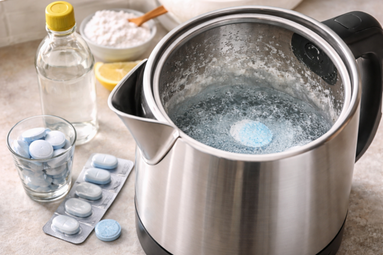 If the element in your kettle is encrusted with thick, hardened limescale that has been accumulating for months or years, a denture tablet will not cut through it. A dedicated descaling product with citric acid or acetic acid will be far more effective.